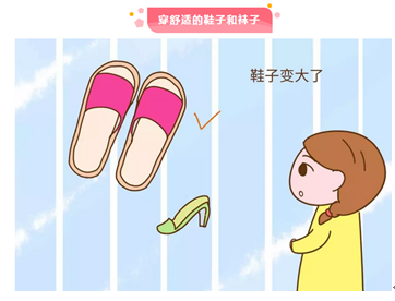 准妈妈不要穿会压迫到脚踝及小腿的过紧的袜子,以免影响血液回流。另外,若准妈妈身体条件允许,可以进行适当体育锻炼,如游泳对减轻水肿有一定好处。